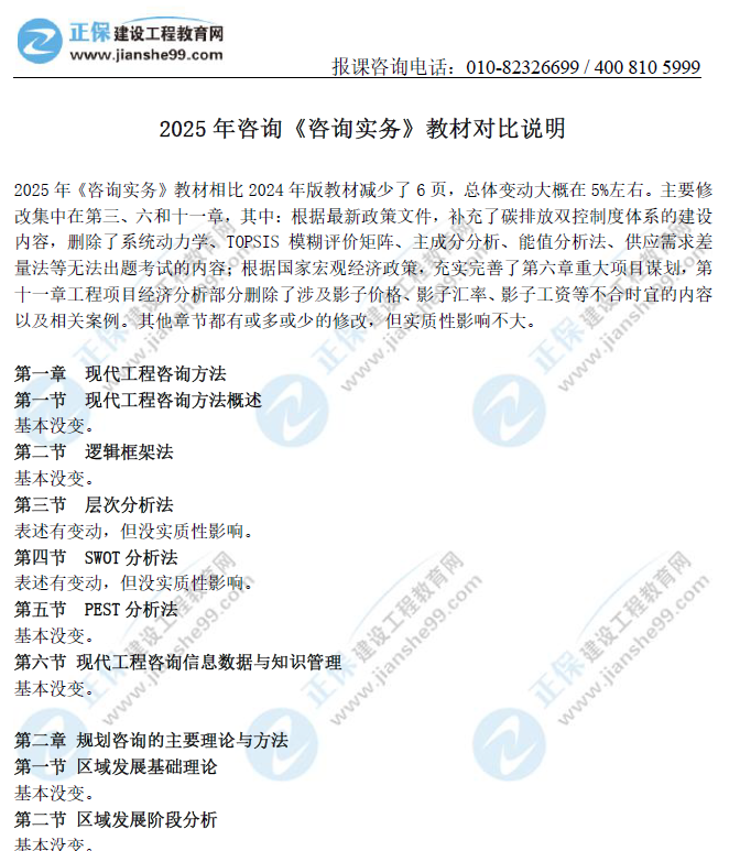 - · 2025年咨詢工程師《咨詢實務(wù)》教材變動約5%左右