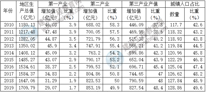 表1 十四五規(guī)劃三次產(chǎn)業(yè)增加值及比重、城鎮(zhèn)人口數(shù)量及比重