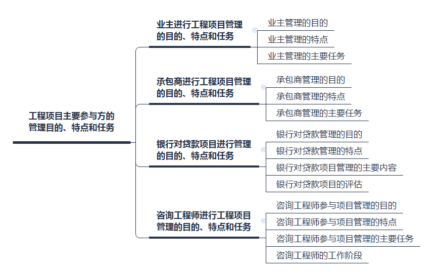 三、工程項目主要參與方的管理目的、特點和任務(wù)-高清思維導(dǎo)圖