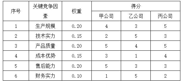 表 甲、乙、丙公司競爭態(tài)勢矩陣