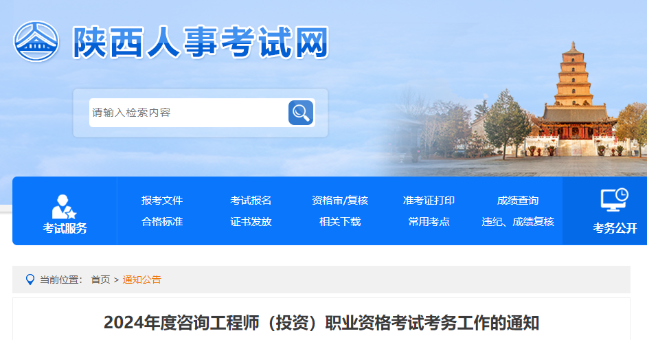 陜西省人事考試網(wǎng)發(fā)布《關(guān)于2024年度咨詢工程師(投資)職業(yè)資格考試工作有關(guān)事項(xiàng)的通知》,詳情如下: