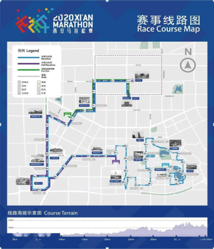 半程路線:南門東盤道→南大街→鐘樓盤道→西大街→安定門盤道→環(huán)城西路南段→太白北路→友誼西路→高新路→科技路→唐延路→丈八東路→丈八一路→錦業(yè)路→唐延南路→丈八東路→太白南路→電子二路→青松路→朱雀大街南段
