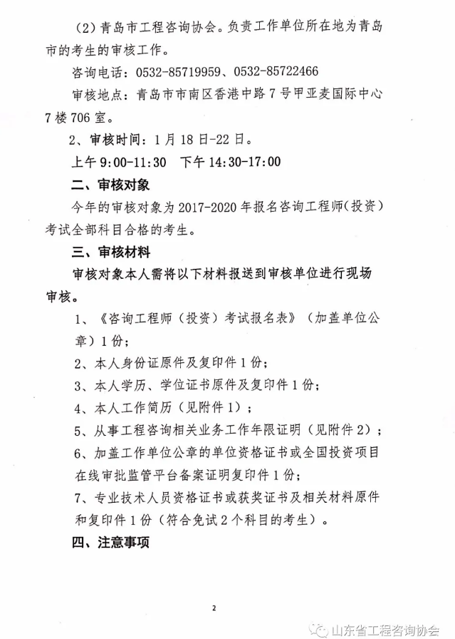 關(guān)于2020年度山東省咨詢工程師(投資)職業(yè)資格考試考后審核的通知