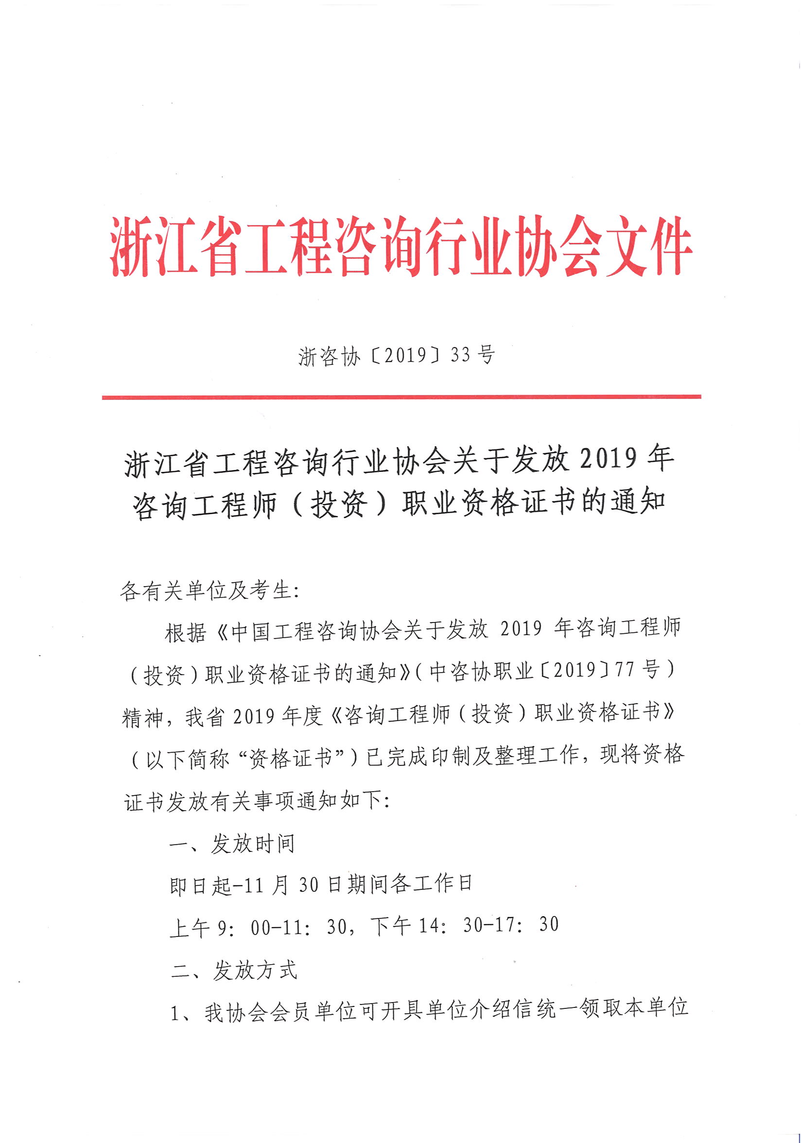 浙江省開(kāi)始發(fā)放領(lǐng)取2019年咨詢工程師考試合格證書(shū)