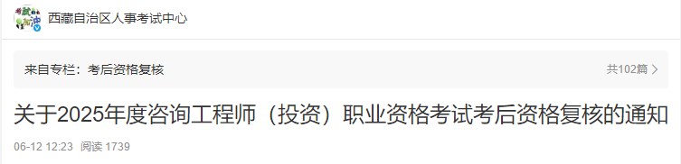 西藏關(guān)于2025年度咨詢工程師(投資)職業(yè)資格考試考后資格復(fù)核的通知