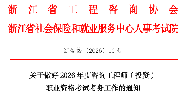 浙江發(fā)布關(guān)于做好2026年咨詢工程師(投資)職業(yè)資格考試考務(wù)工作的通知