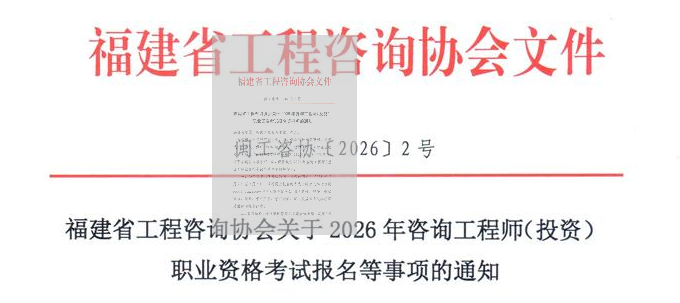 福建工程咨詢(xún)網(wǎng)發(fā)布2026年度咨詢(xún)工程師(投資)職業(yè)資格考試報(bào)考簡(jiǎn)章,具體信息如下: