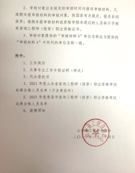2021年度山東省咨詢工程師(投資)職業(yè)資格考試考后審核的通知