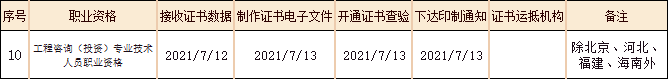 2021年咨詢工程師考試成績(jī)查詢已經(jīng)結(jié)束,接下來(lái)就是領(lǐng)取證書(shū)環(huán)節(jié)啦,咨詢工程師考試證書(shū)更新進(jìn)度請(qǐng)登錄中國(guó)人事考試網(wǎng)進(jìn)行查詢。(除北京、河北、福建、海南外)具體證書(shū)辦理進(jìn)度可查看下方圖片。