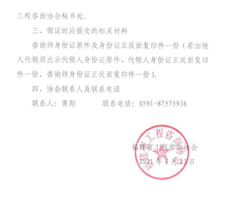 福建省2021年咨詢工程師證書領(lǐng)取時間是2021年8月24日至11月30日,相關(guān)通知如下: