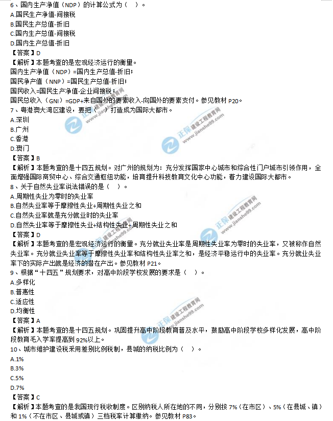 2021年咨詢工程師《宏觀經(jīng)濟政策與發(fā)展規(guī)劃》試題及答案1-10