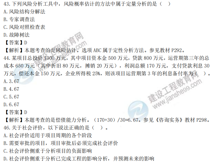 2021年咨詢(xún)工程師項(xiàng)目決策分析與評(píng)價(jià)試題答案及解析41-50
